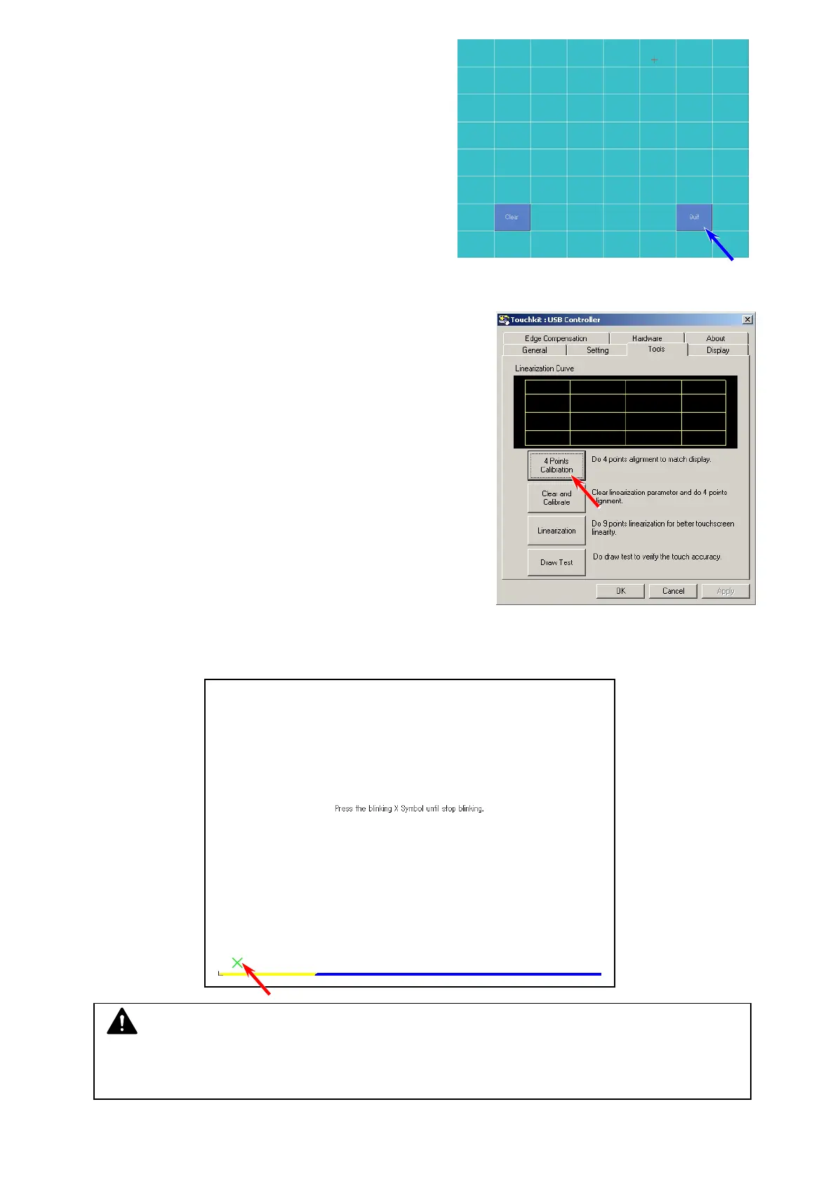 13. On Calibration screen, a blinking X symbol on the bottom left can be seen.