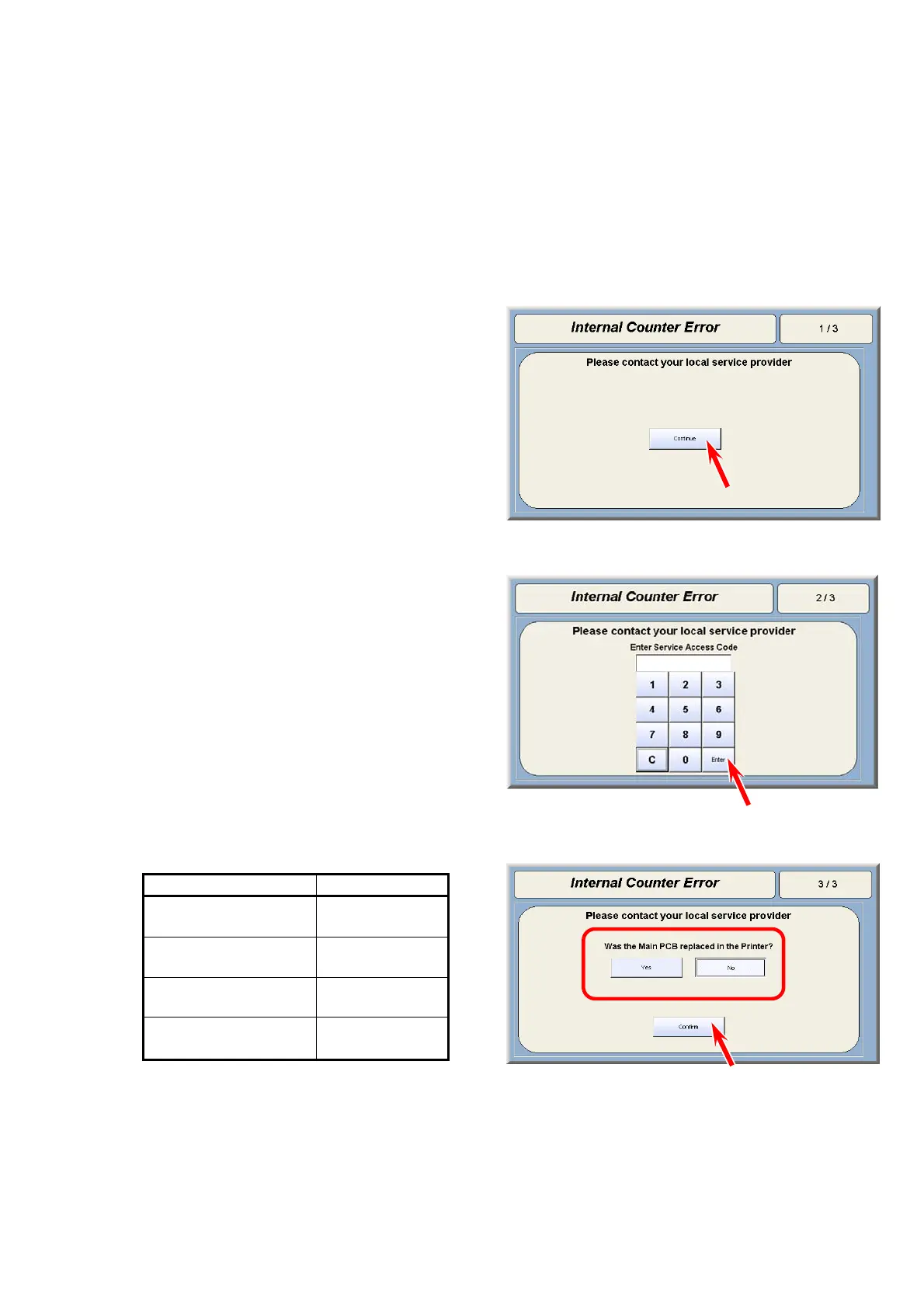 1. “Internal Counter Error” appears. Press [Continue].