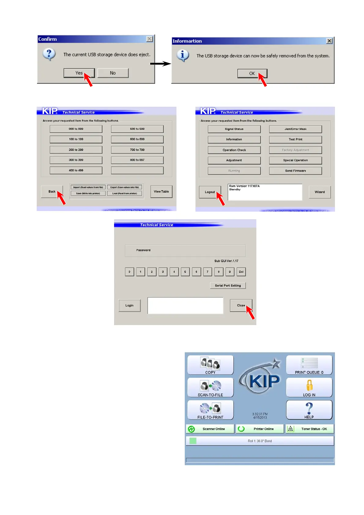 10. Press [Back], [Logout] then [Close] to cancel Service Mode.