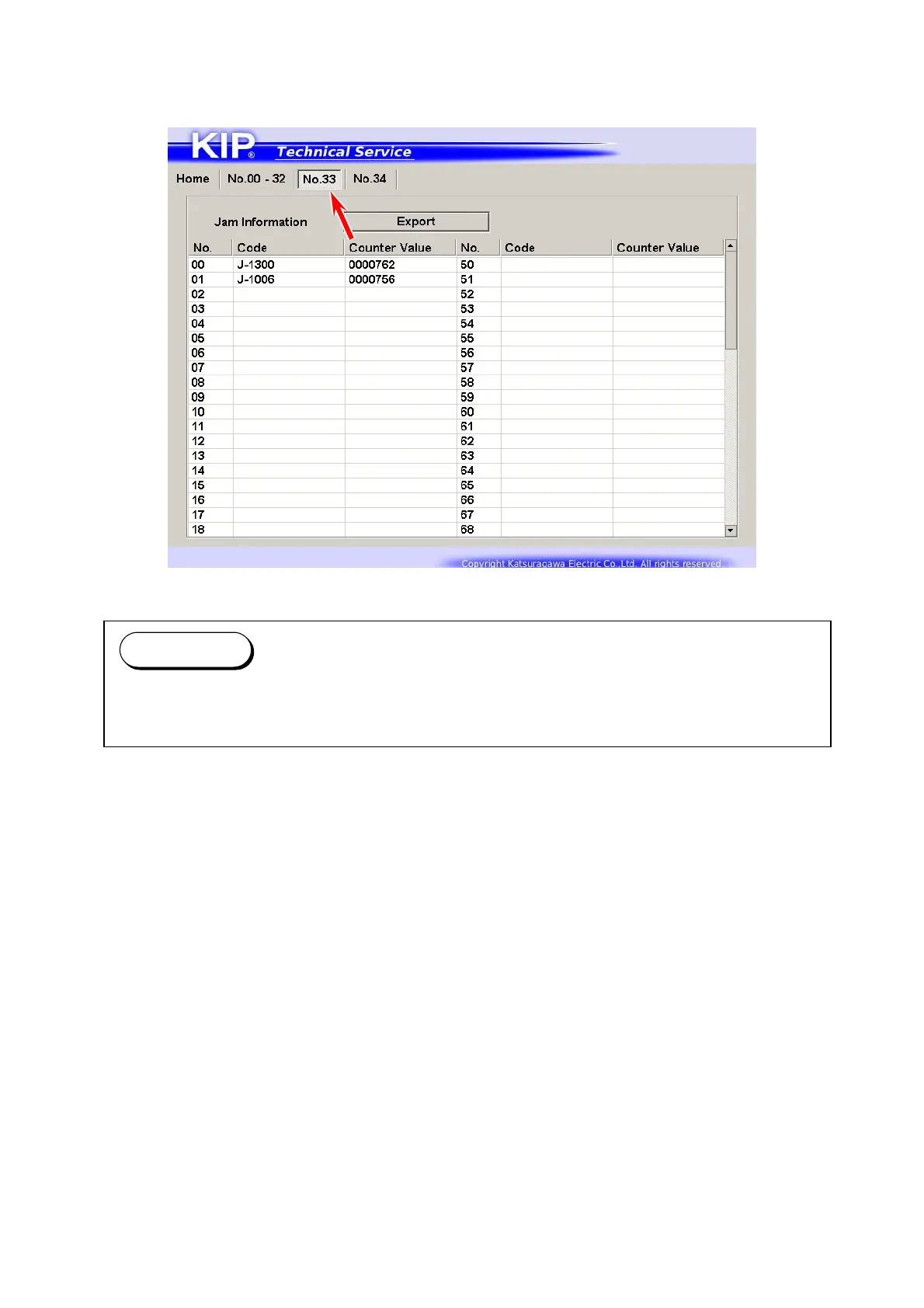 To browse the machine’s jam history, open [No.33] tab to display Jam History screen.