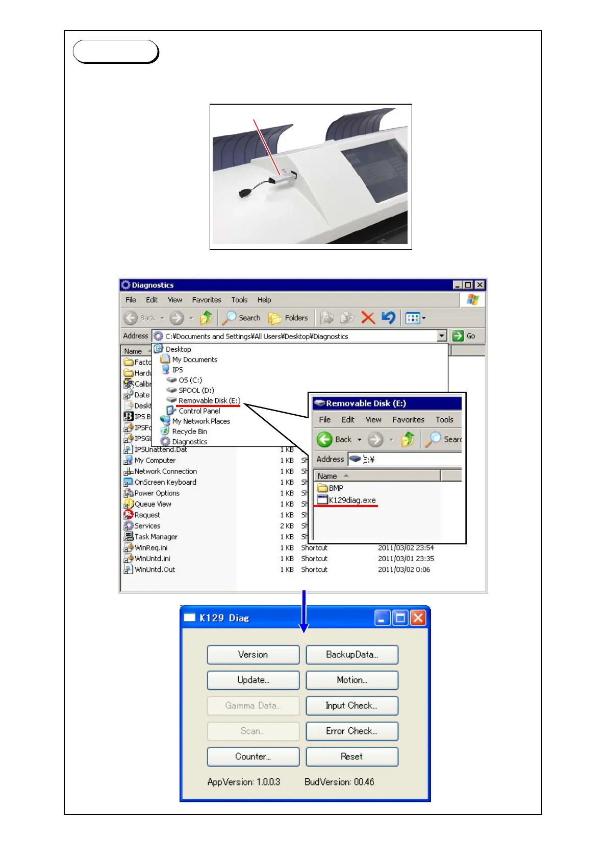 1. Contact your KIP partner for K129Diag.exe and save it to any available storage on your USB