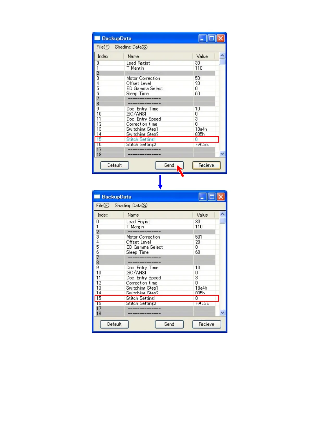 Click [Send] on the bottom. The setting change turns black. Now it is sent to the Main Board.