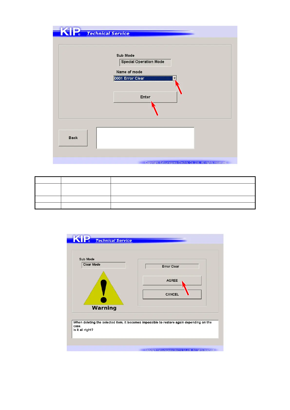 0001 Error Clear Clears E-0000 / 0001 / 0002 / 0003 / 0004