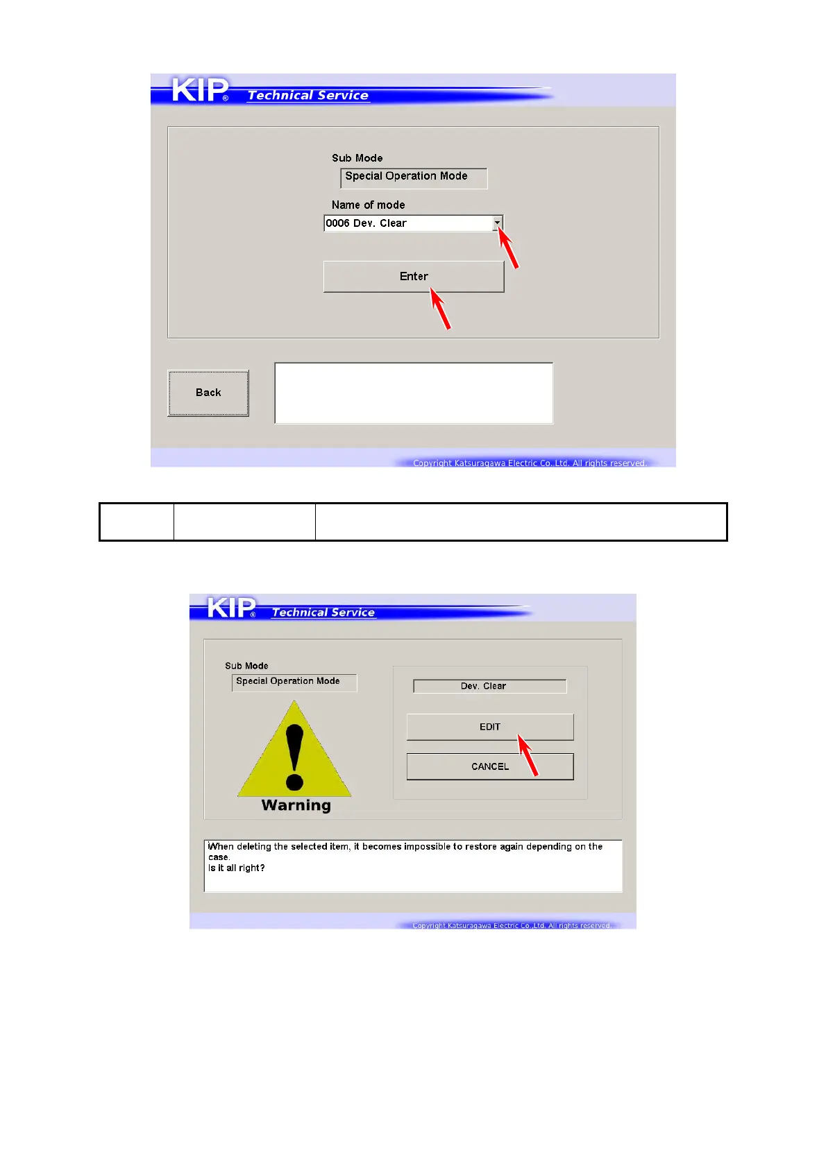2. Select [0006 Dev. Clear] from Name of mode menu. Press [Enter].