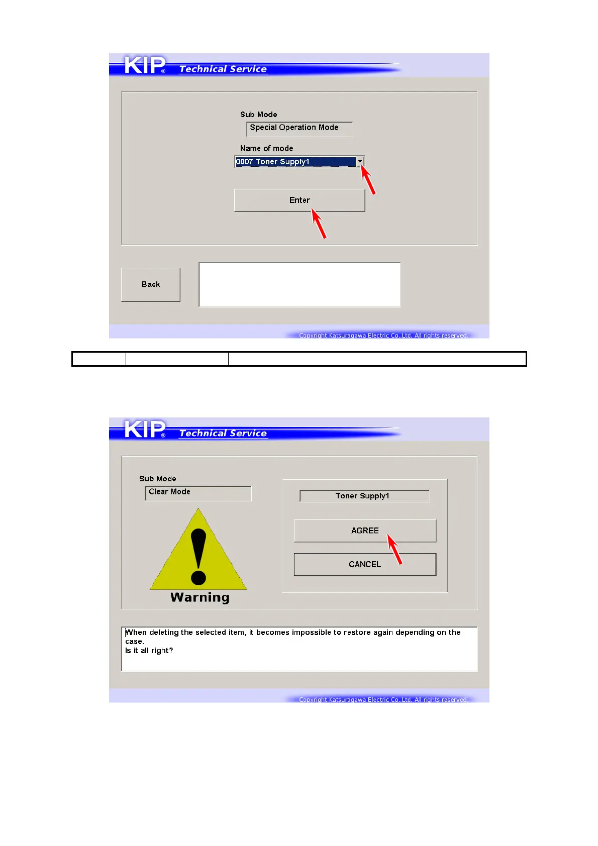 2. Select [0007 Toner Supply1] from Name of mode menu. Press [Enter].