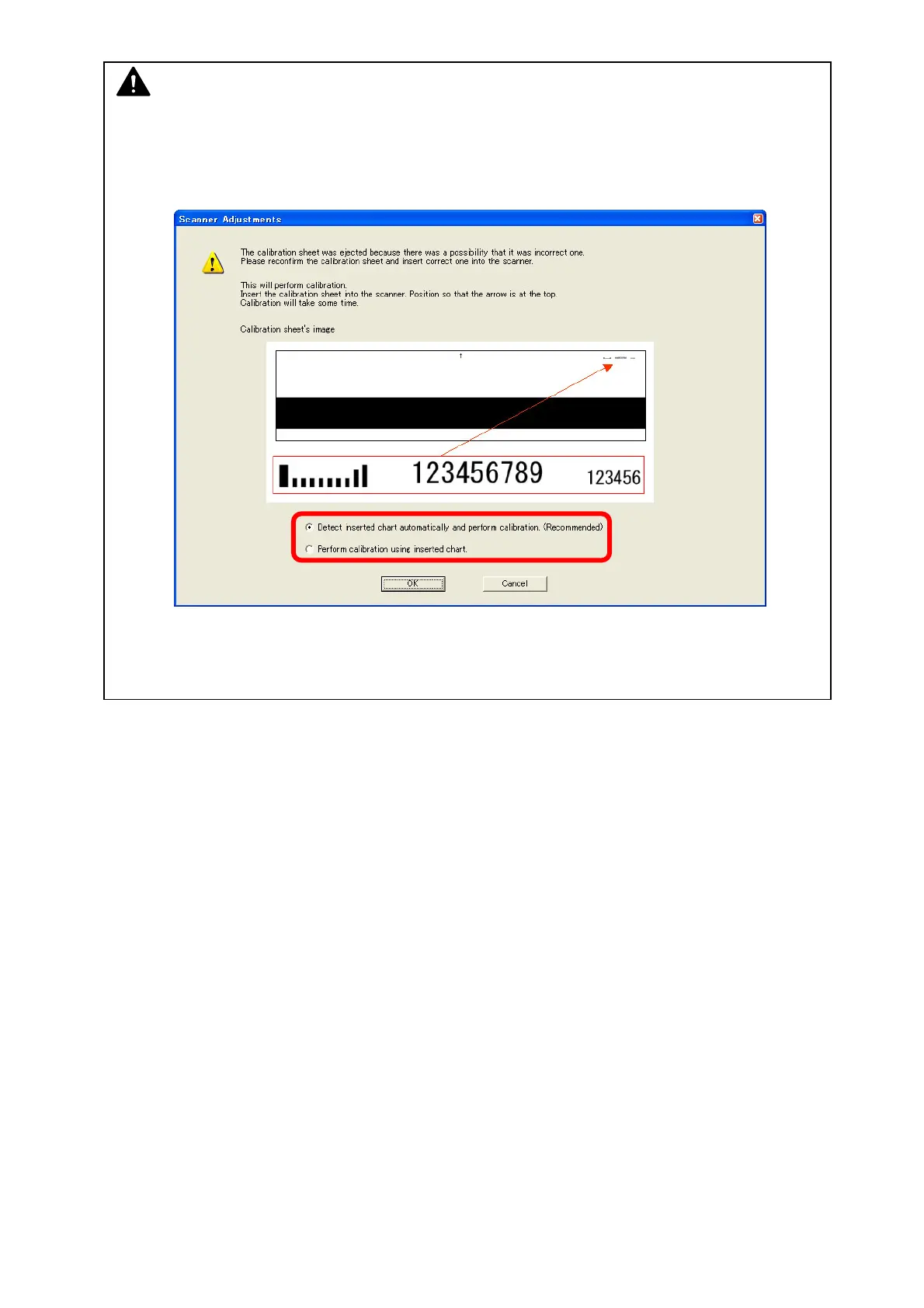 Confirm that [Detect inserted chart automatically and perform calibration (Recommended)] is