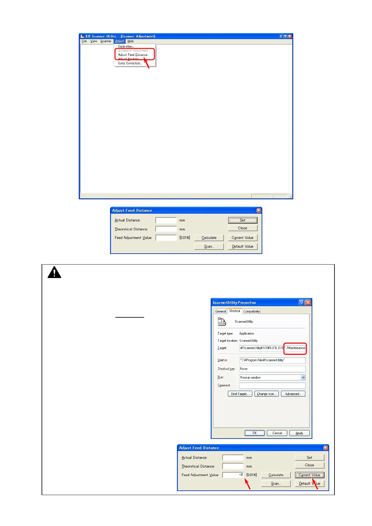 4. Select [Adjust Feed Distance] from [Adjust]. Adjust Feed Distance Dialog is indicated.
