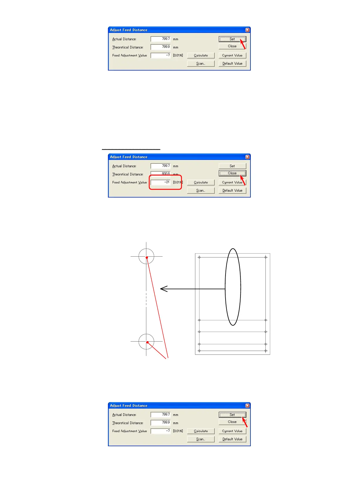 c) Click [Set] to validate the Value indicated in [Feed Adjustment Value].