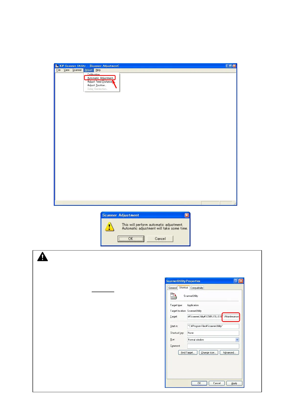3. Select [Automatic Adjustment] from [Adjust]. Scanner Adjustment Dialog is indicated.