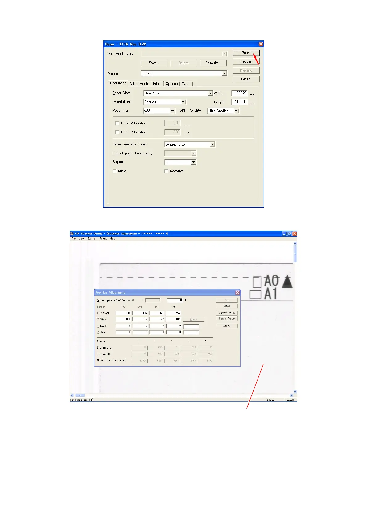 10. The scan image of Scanner Adjustment Chart is indicated in the screen of KIP Scanner Utility.