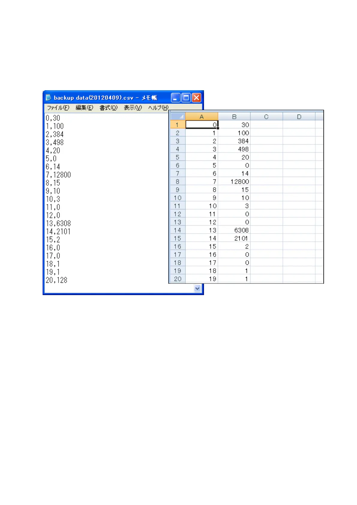 1. Open the backup data file (*.csv) with Notepad or Microsoft Excel for example.