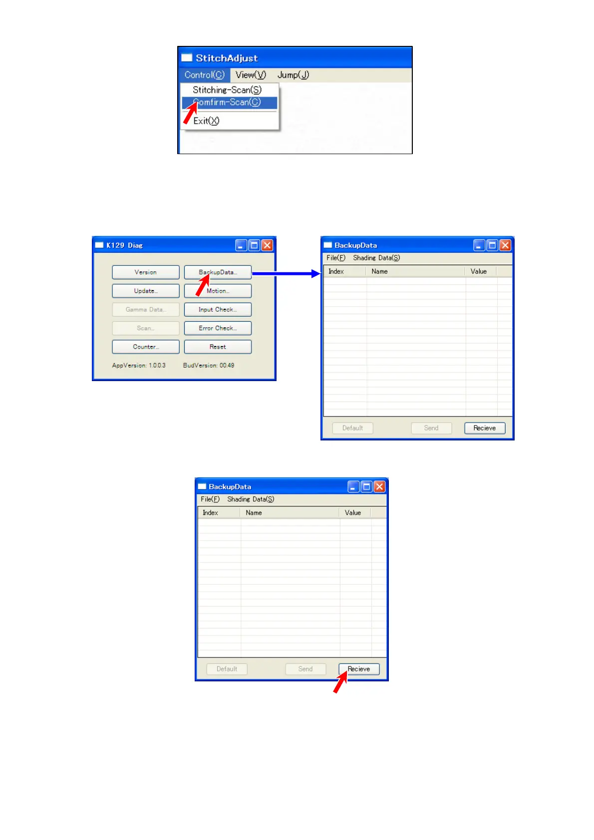 23. In “StitchAdjust” window, select [Control] menu, and then click [Confirm-Scan] to make another scan.