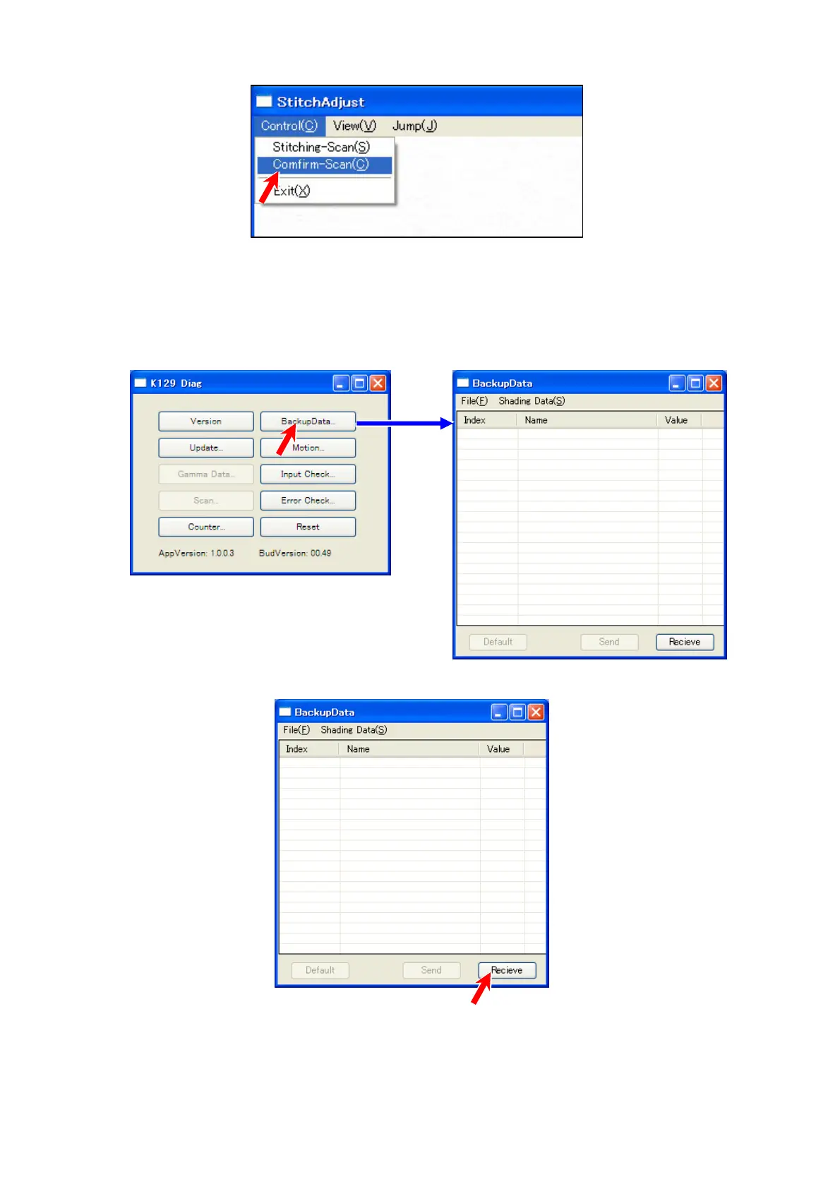23. In “StitchAdjust” window, select [Control] menu, and then click [Confirm-Scan] to make another