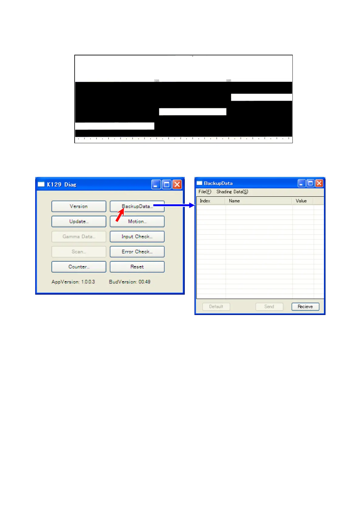 1. Run K129 Diag. Click [BackupData] to recall “Backup Data” list sub window.