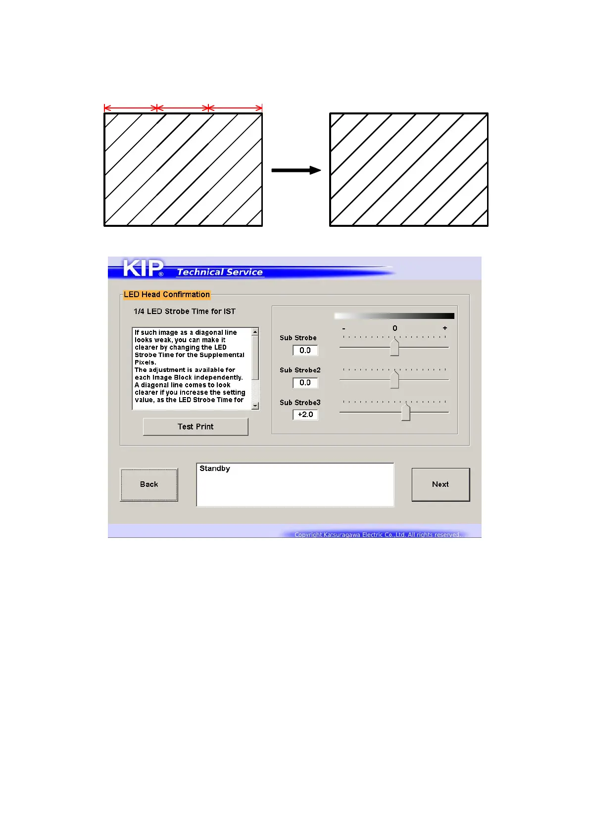 2. [1/4 LED Strobe Time for IST] is used to confirm the image like diagonal lines.