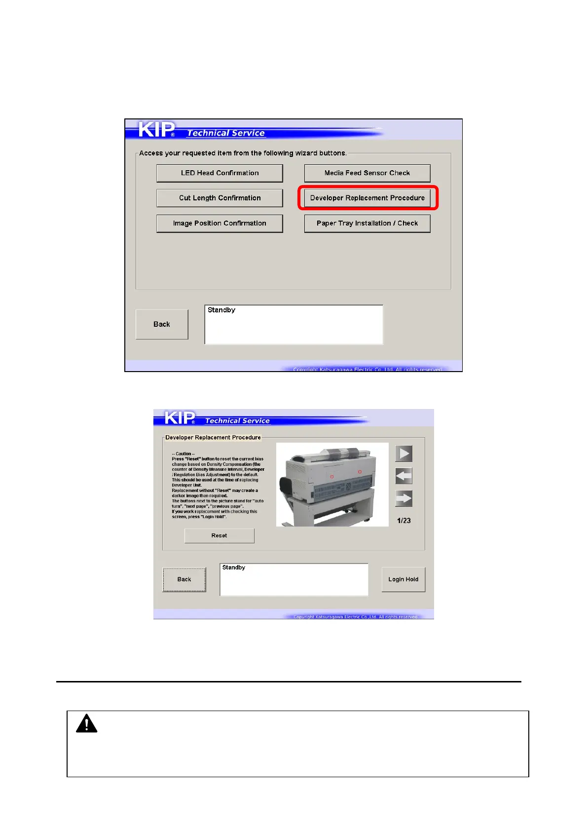2. [Developer Replacement Procedure] screen appears.