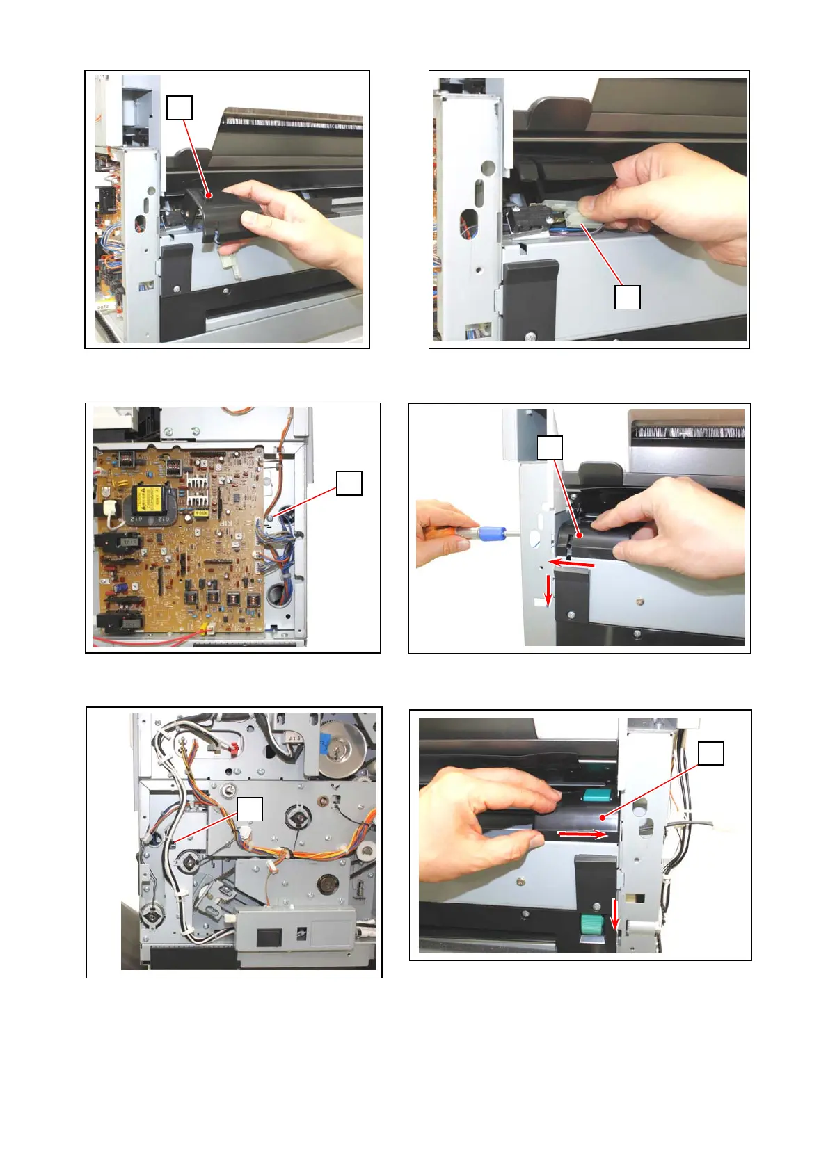 6. With pressing the switch cover (14) to the arrow direction (outward and downward), fix it with 1 screw (13).