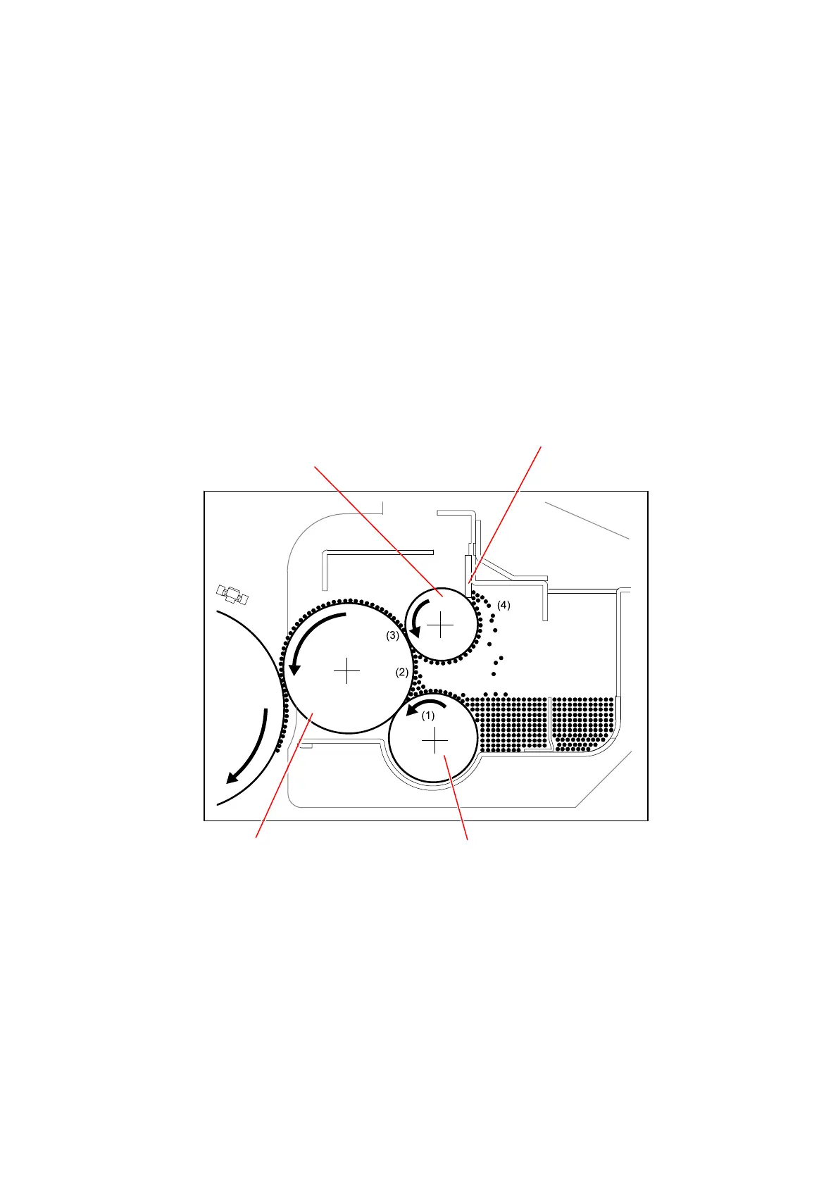 2. When the toner reaches the contact point of these rollers, therefore, it moves onto the