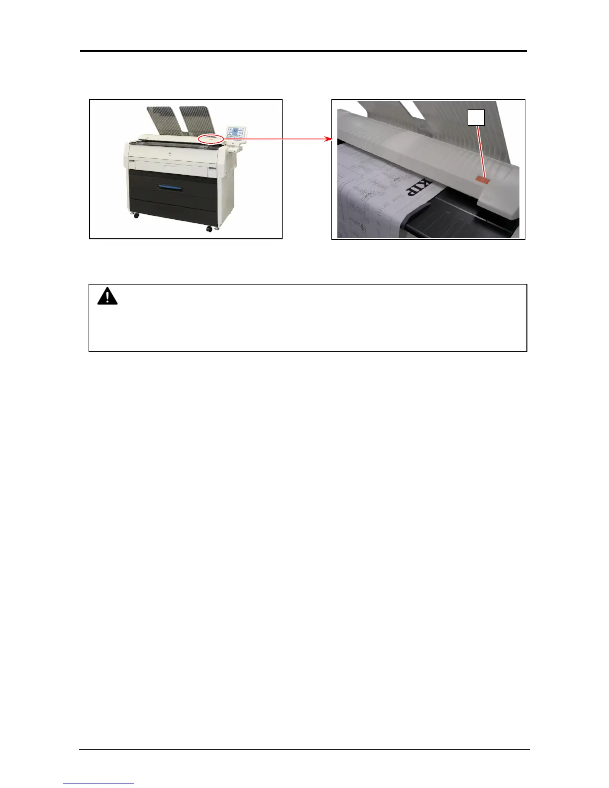 1. If necessary, press the Emergency Stop Button (1) on the Scanner Unit to immediately stop the