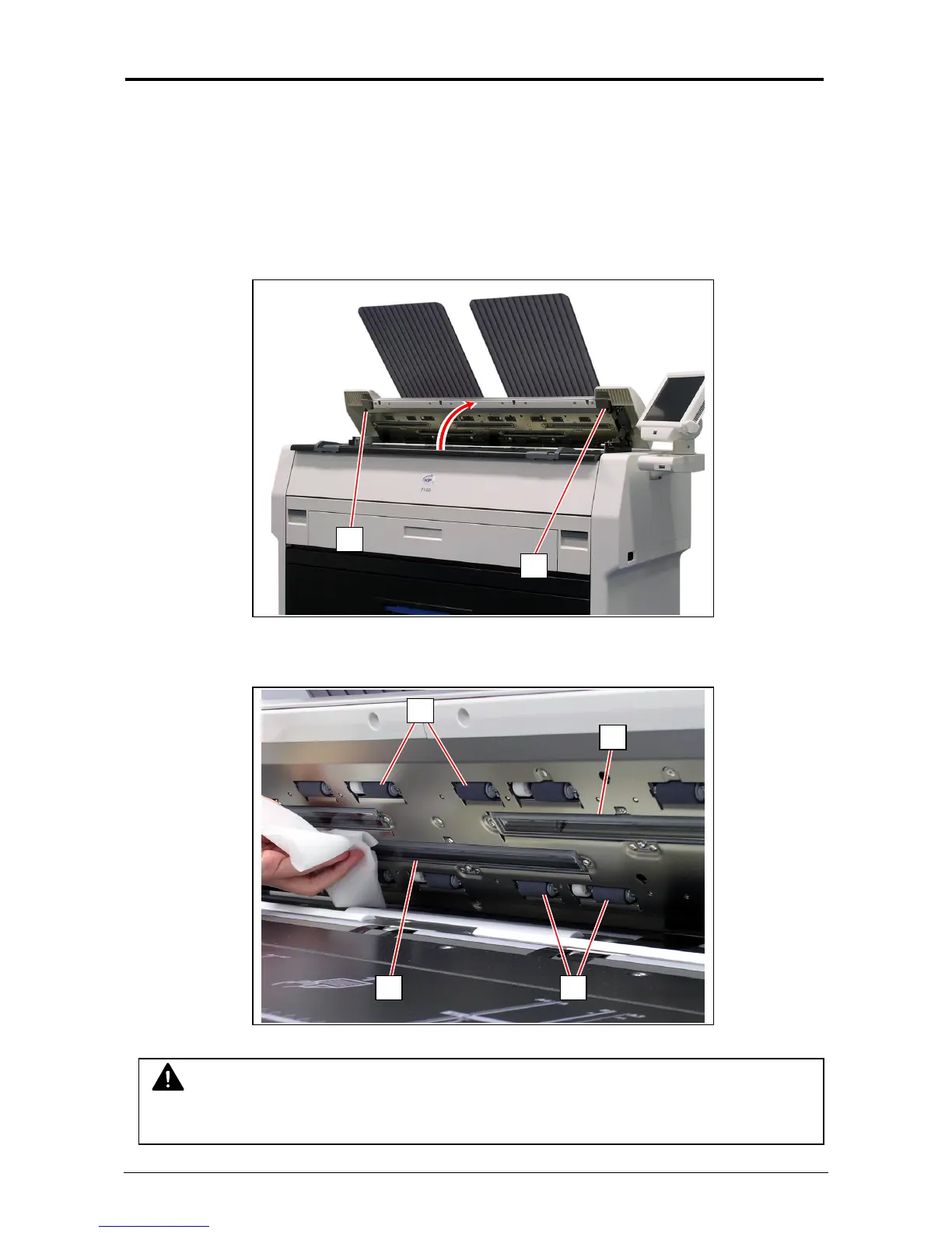 3. Wipe each Scan Glass (2), Press Rollers (3) and the inside surface with a soft cloth.