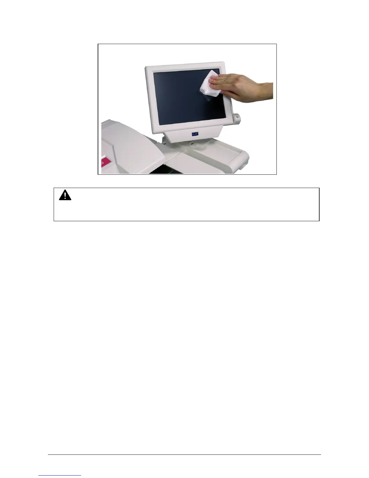 KIP 7100 - Touch Screen Cleaning; Dry Cloth Cleaning Method; Cleaning Agent Restrictions
