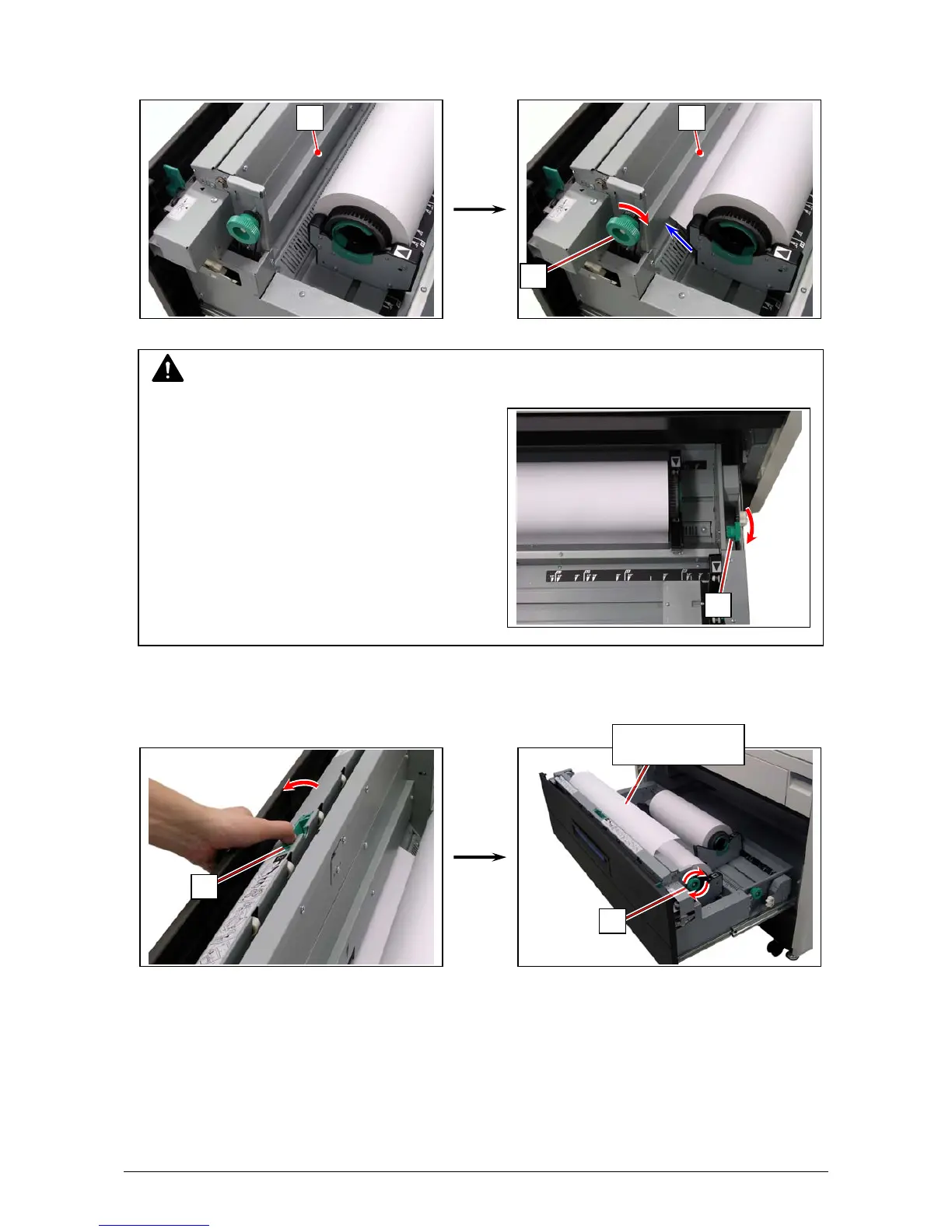 Rotate Feed Knob (9) clockwise so that the feeding rollers catch the leading edge.