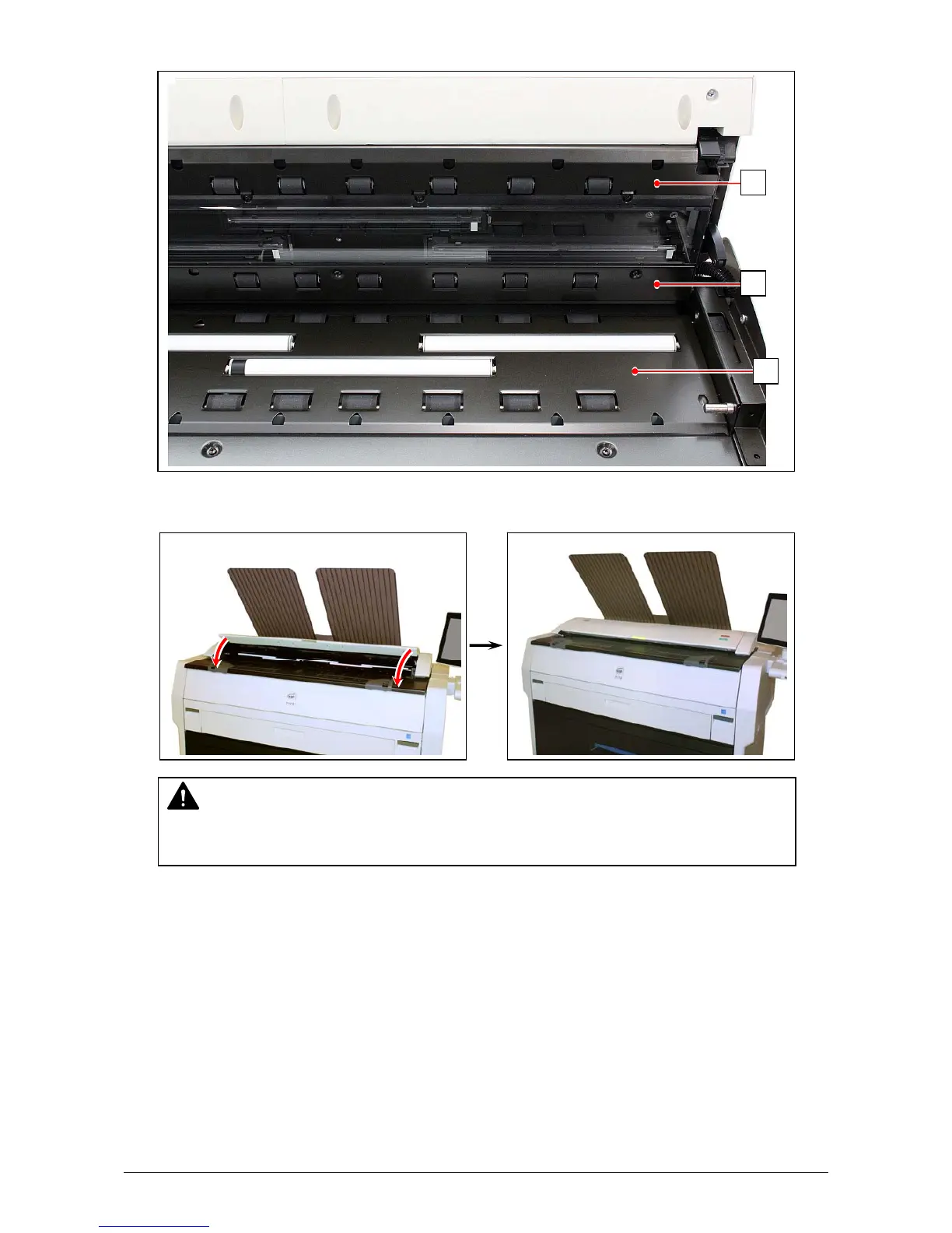 6. Wipe the Upper Guide Plate (5) and the Lower Guide Plate (6) with a dry cloth.