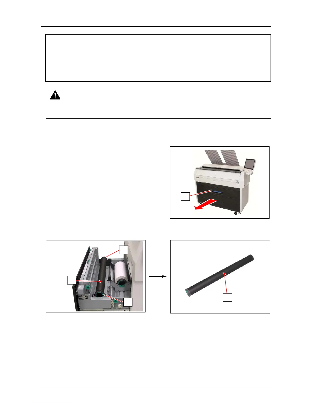 1. Pull the blue lever (1) to unlock the Roll Deck. Draw out the Roll Deck.