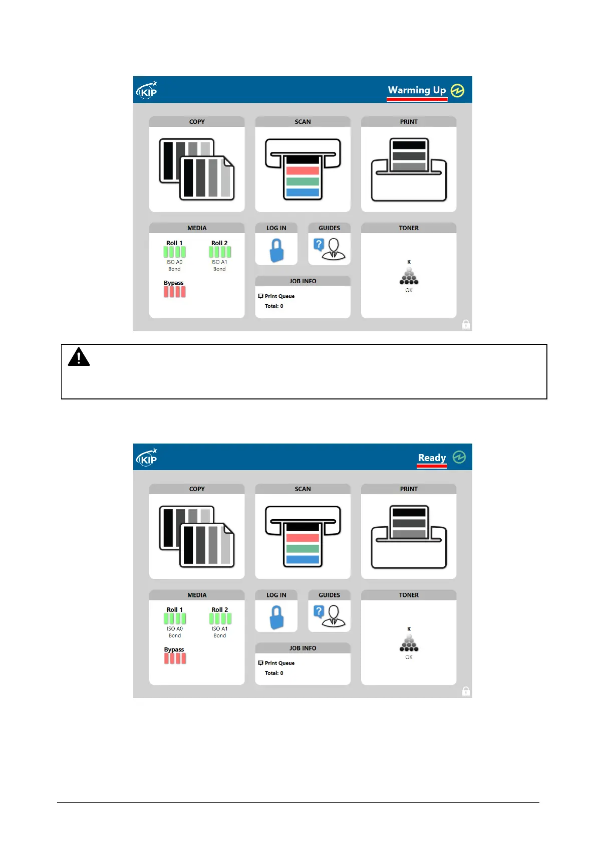 It is not possible to print while displaying "Warming Up" in the status indication.