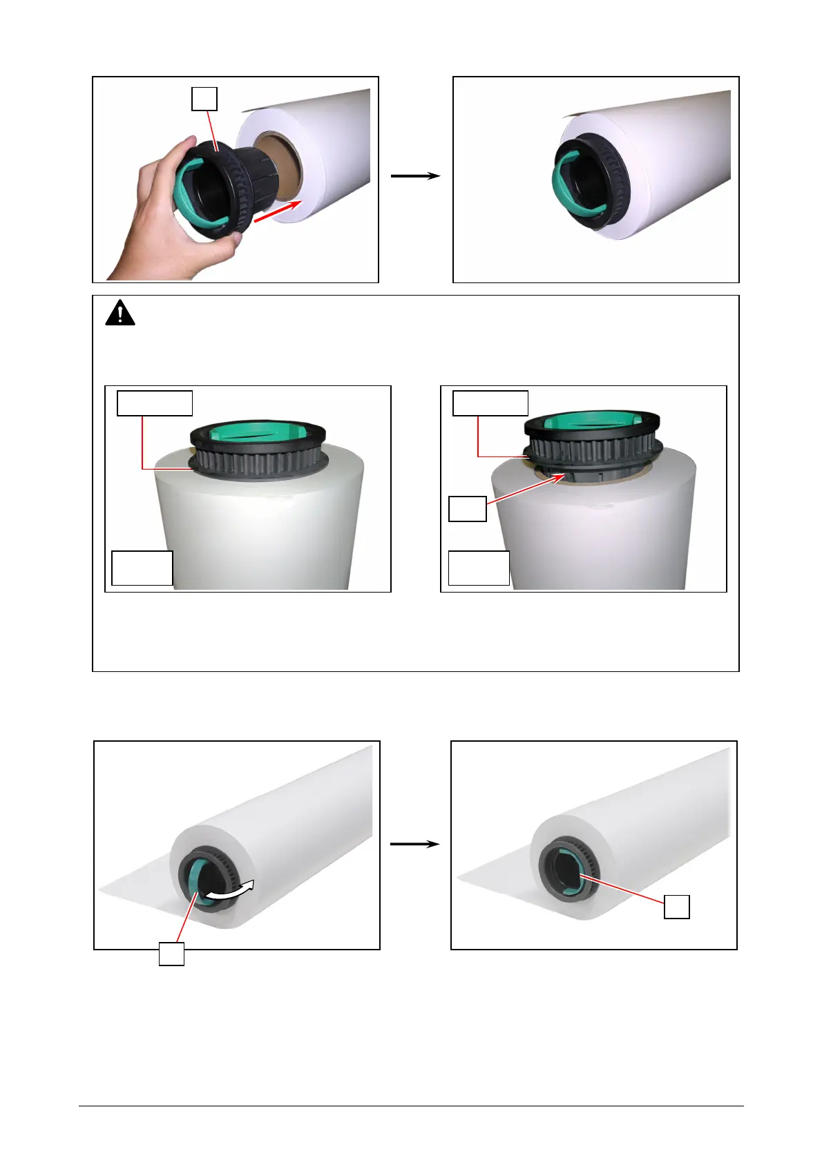 (1) Fully insert Flange into the roll media core so that the inside rim of Flange evenly touches