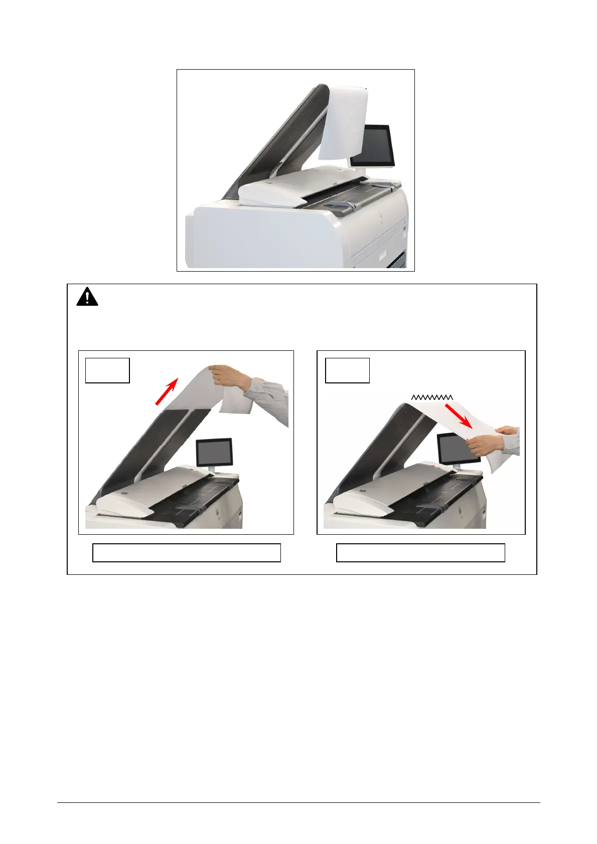 For the front stacking, gently lift up the prints on the print tray to the arrow direction to avoid
