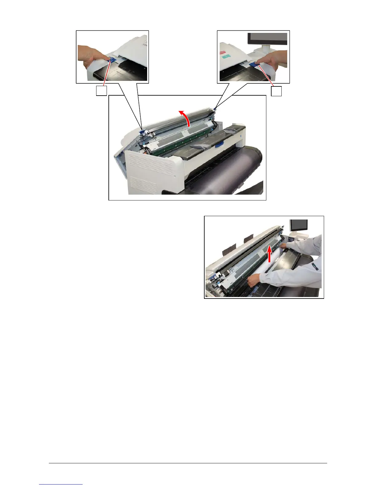 3. Press down the blue levers (3) on both sides to unlock and open the Upper Unit.