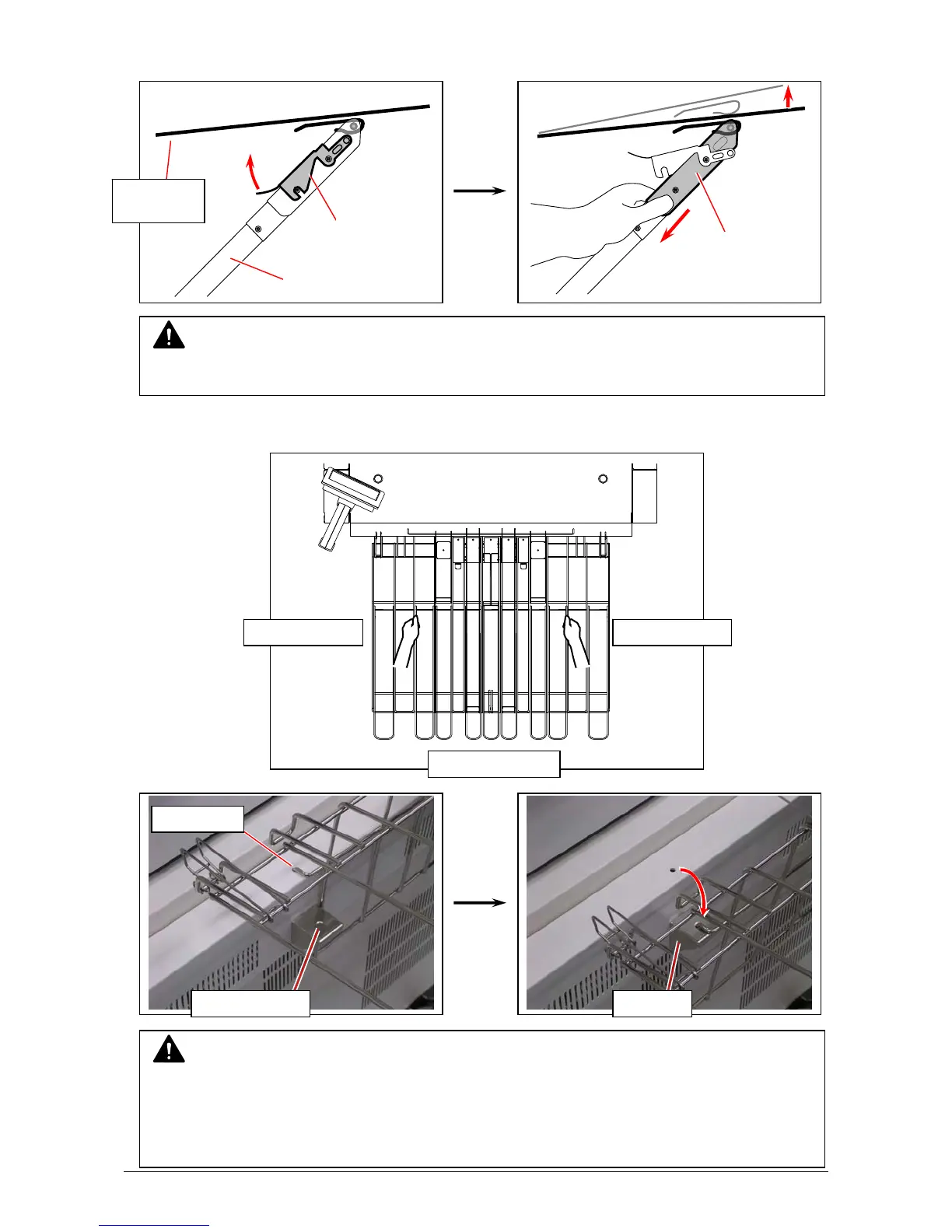 3. Hold the thick wire parts of the tray to lift the entire tray. Insert the hook parts at the “release