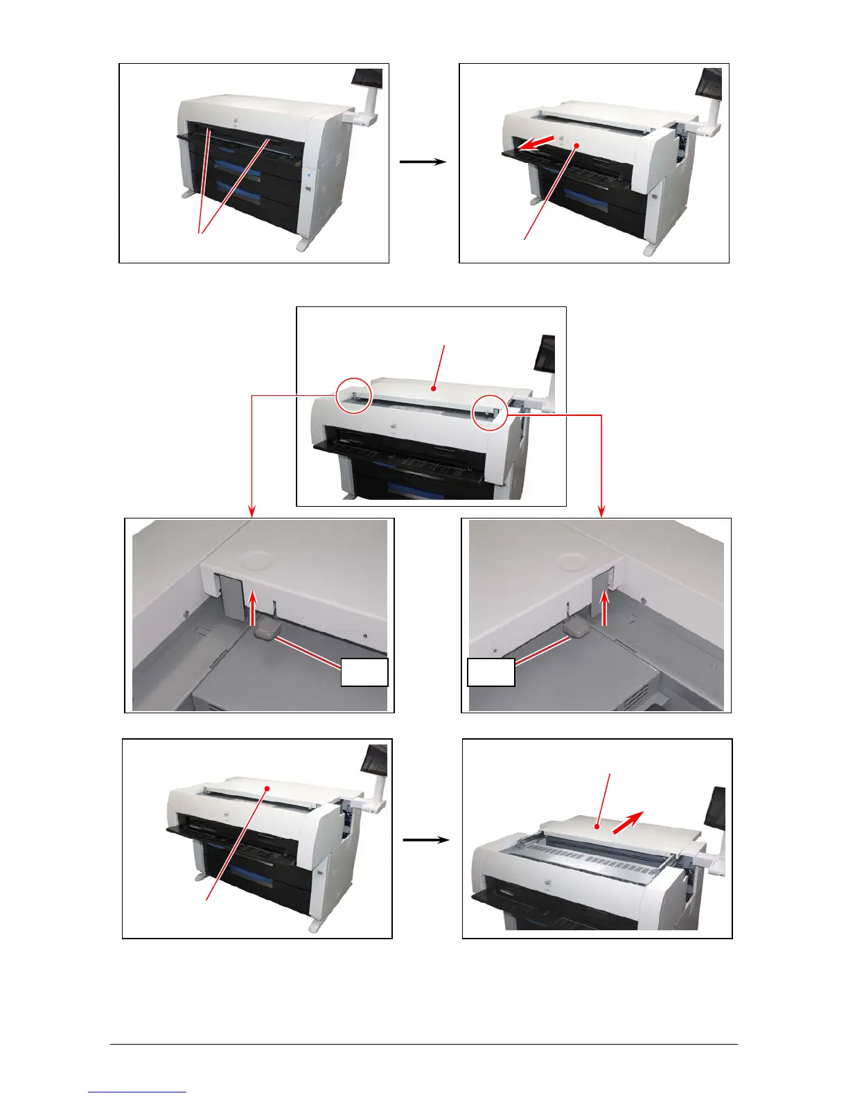 3. Pull up both knobs, and then push the Top Cover to rear side.