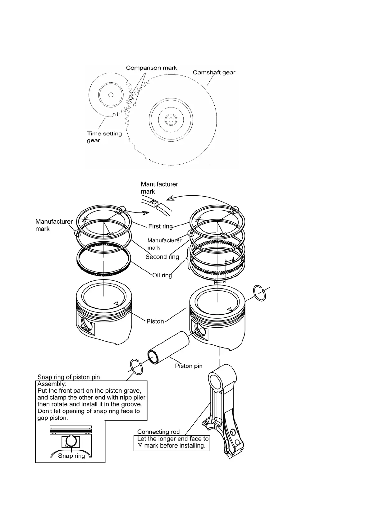Align camshaft with comparison marks of time setting gear (small gear on camshaft) before installing.