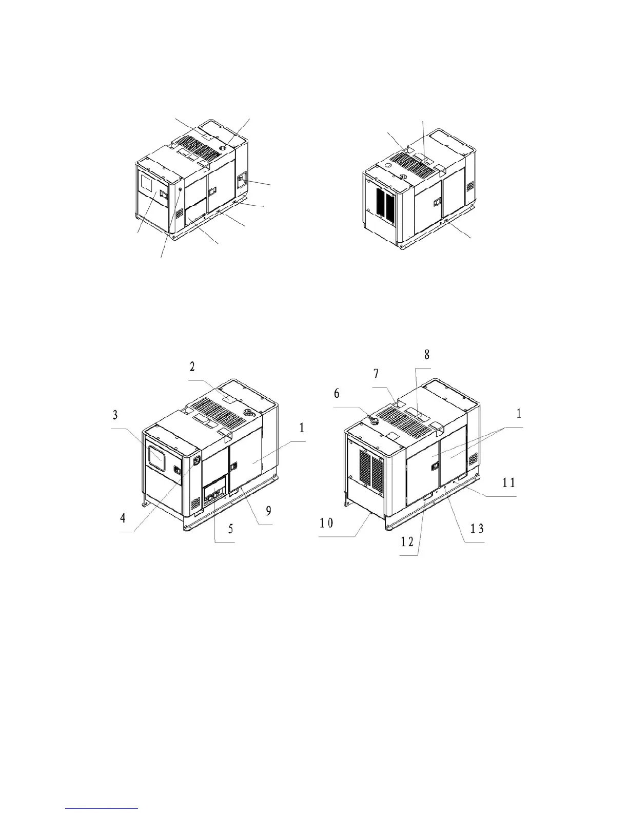 6. Muffler exhaust 13. Fuel filling port of outer fuel tank