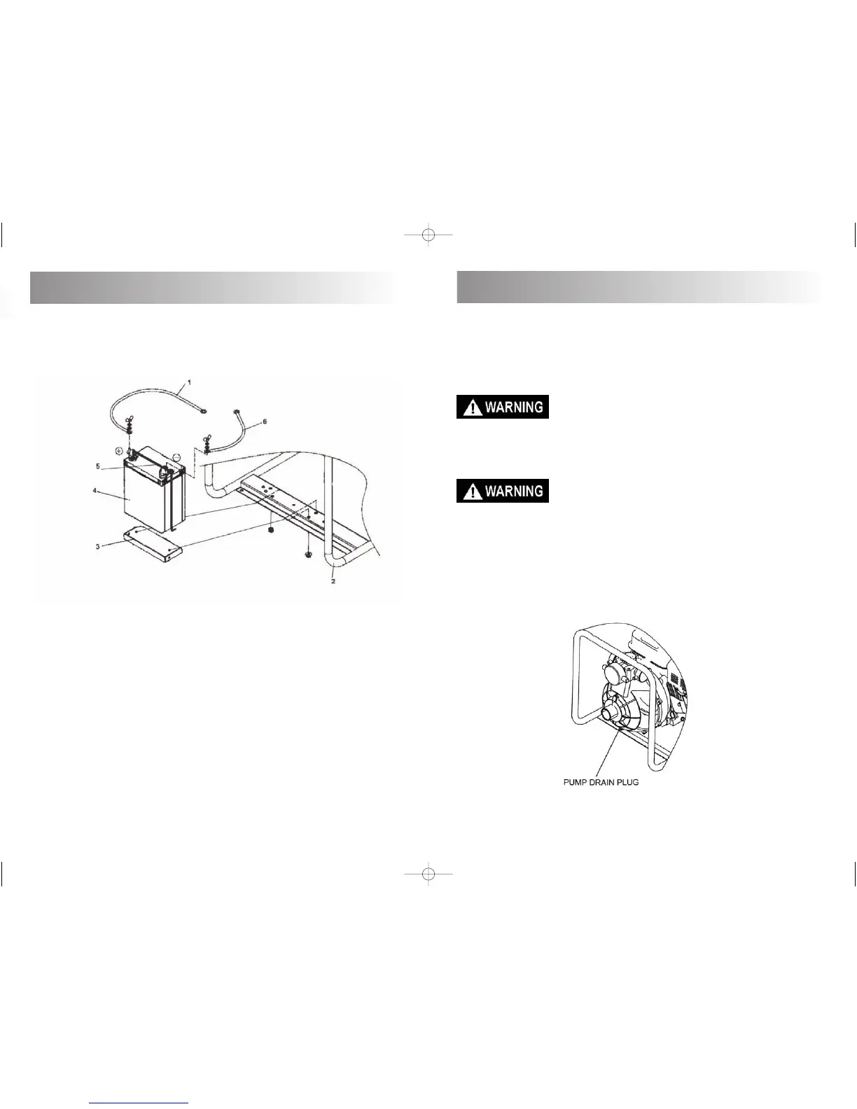 If the water pump is equipped with a battery for the electric start, recharge the battery once