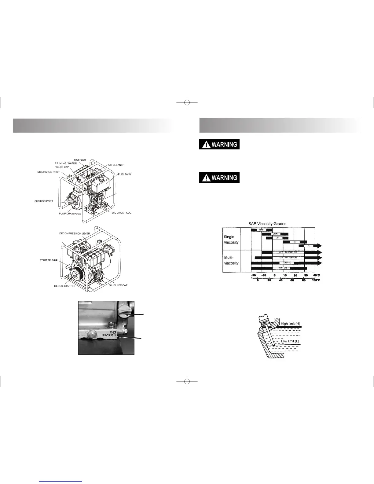 Be sure to check the water pump is on a firm level surface with the engine stopped.