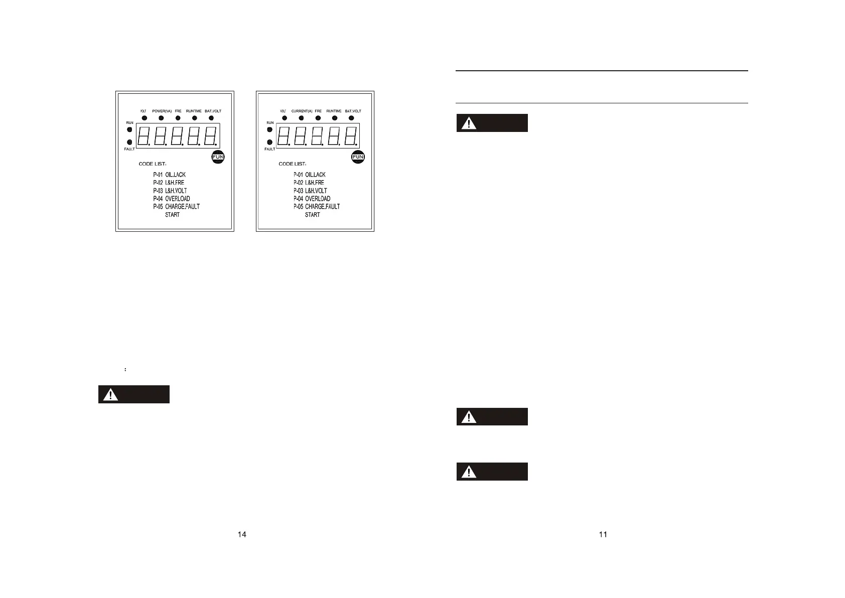 P-03 Over-voltage: indicating the voltage over-high or over-low, the generator will