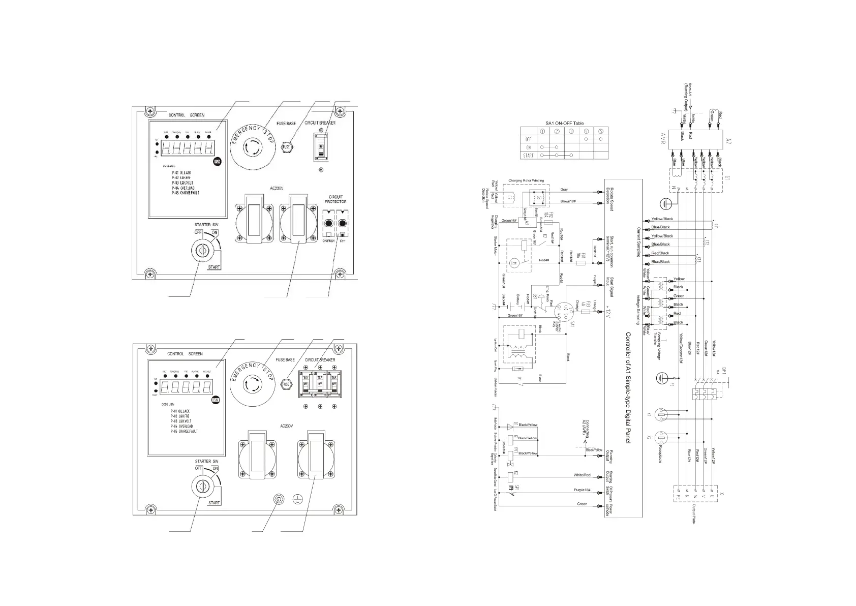 Kipor KGE12E - KGE12 EA;KGE13 EA digital control panel; KGE12 EA3;KGE13 EA3 digital control panel; KGE12 E3 ELECTRICAL WIRING DIAGRAM