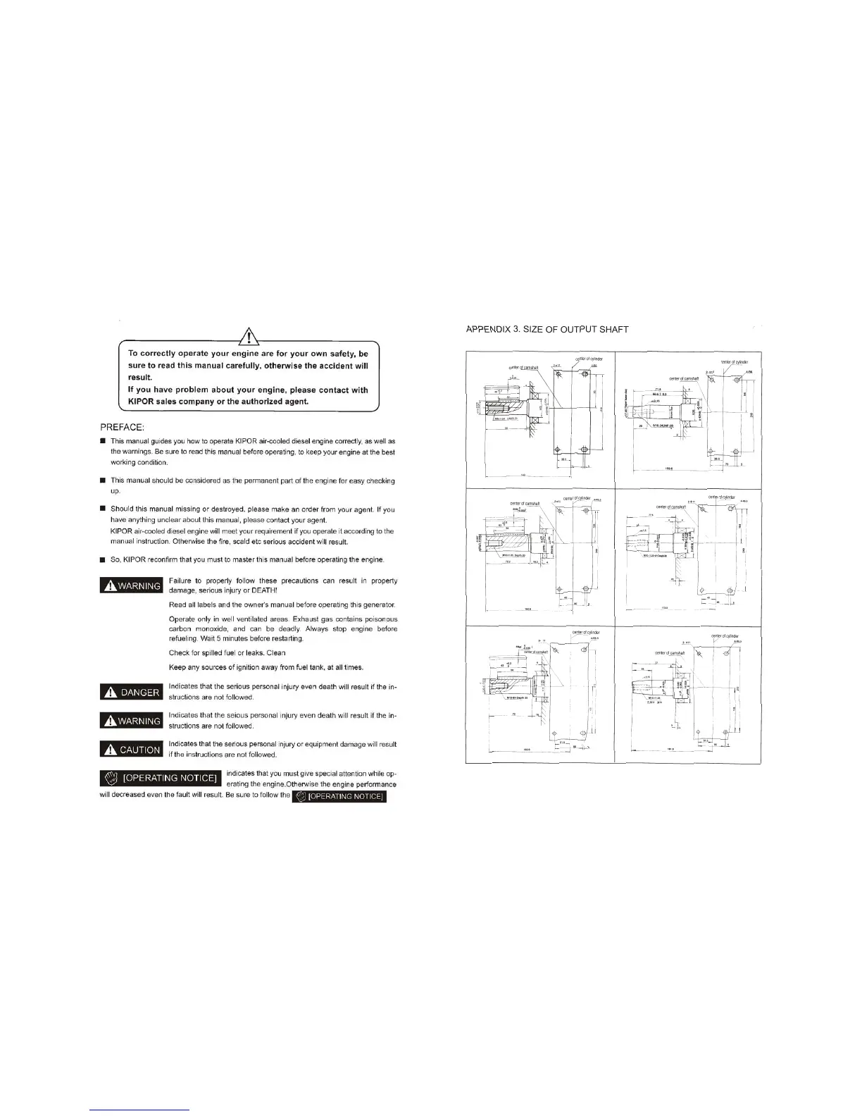 Kipor KM186FA - Main Specifications; Engine Usage; Start the Engine; Run the Engine