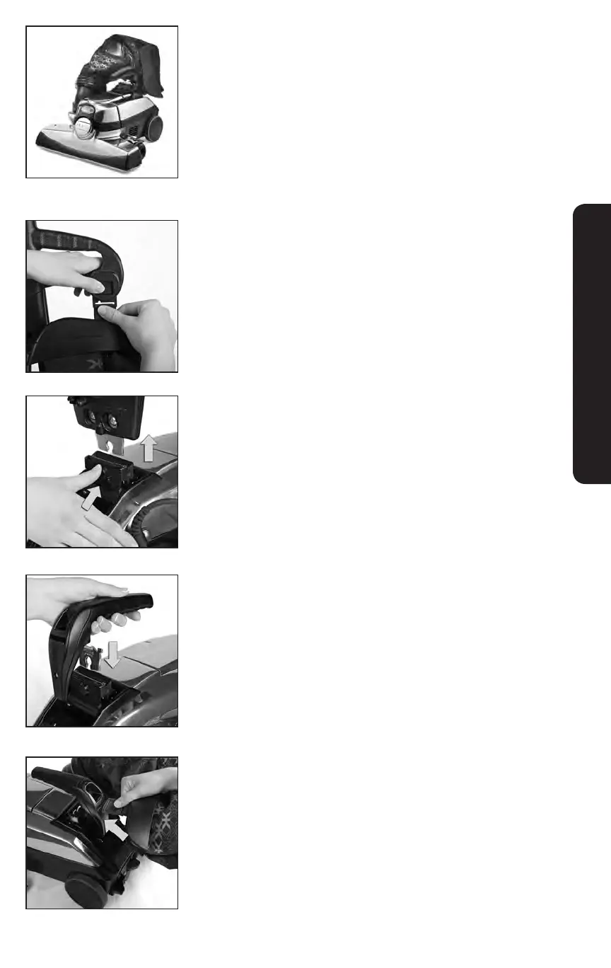 Remove the cord from the Upright Handle. Push the Handle
