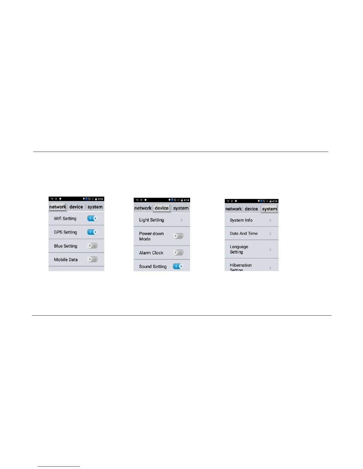 Network settings:WiFi, GPS position, Bluetooth, mobile data on/off to set