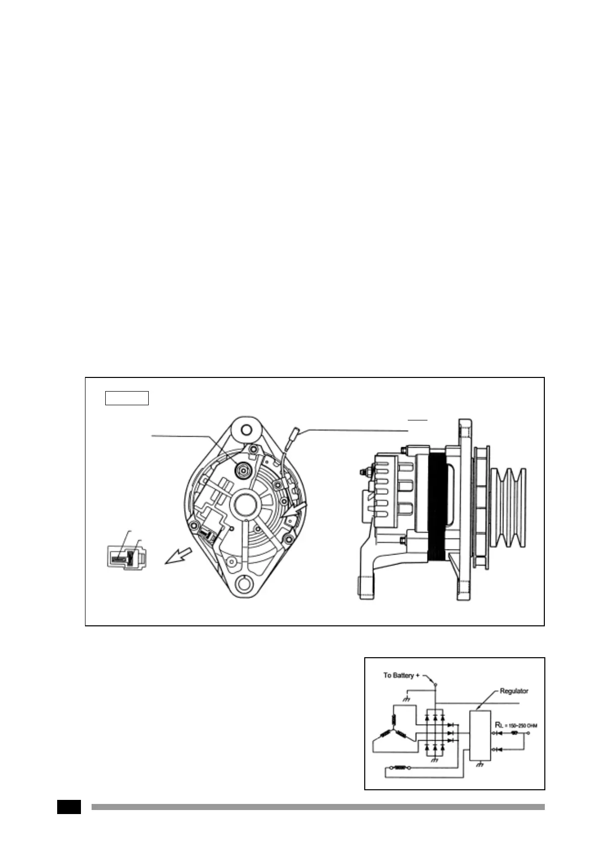 body interior limits the alternator voltage. The alternator should not be operated except with the regulator