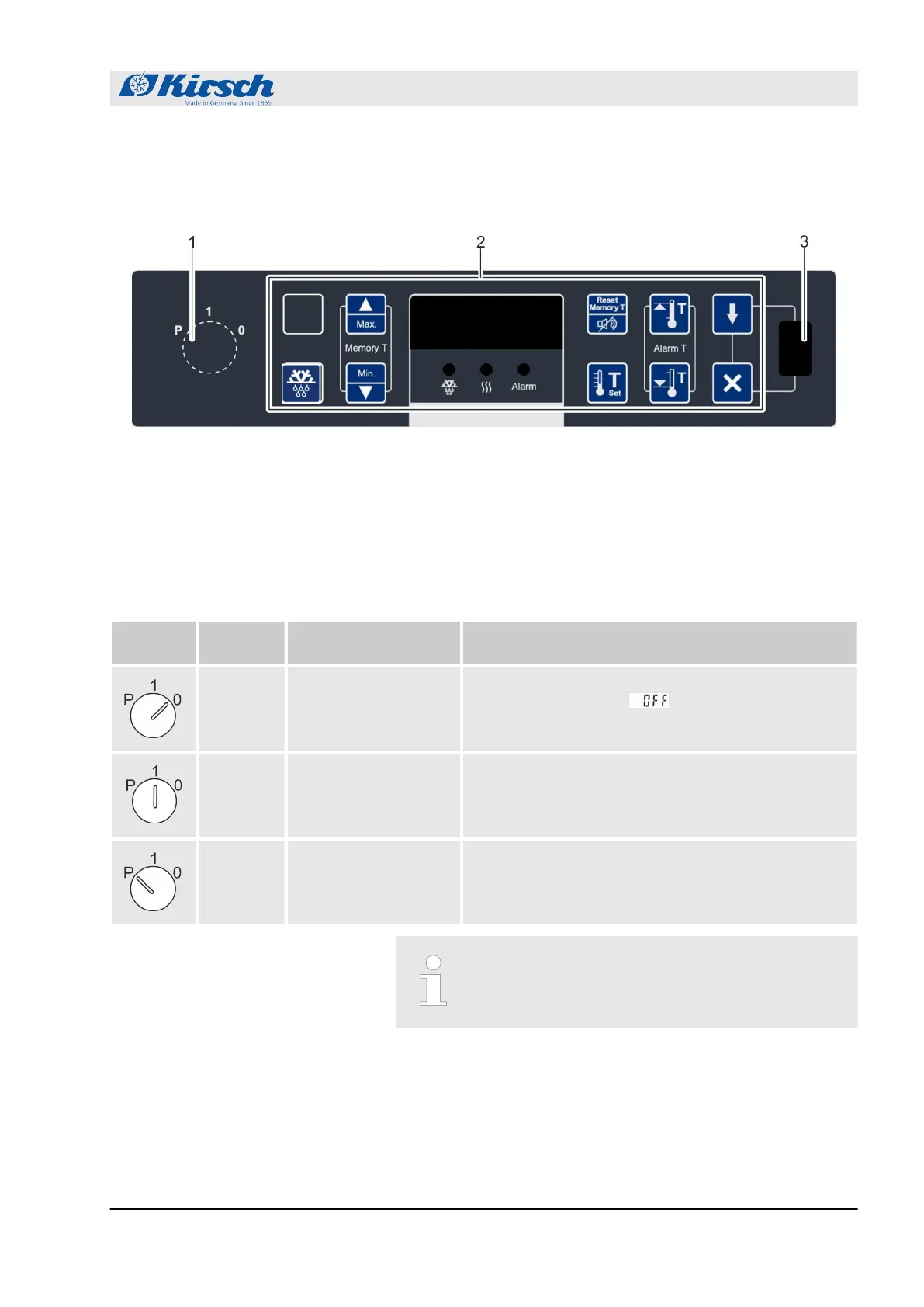 Tab. 1: Position of the key switch
