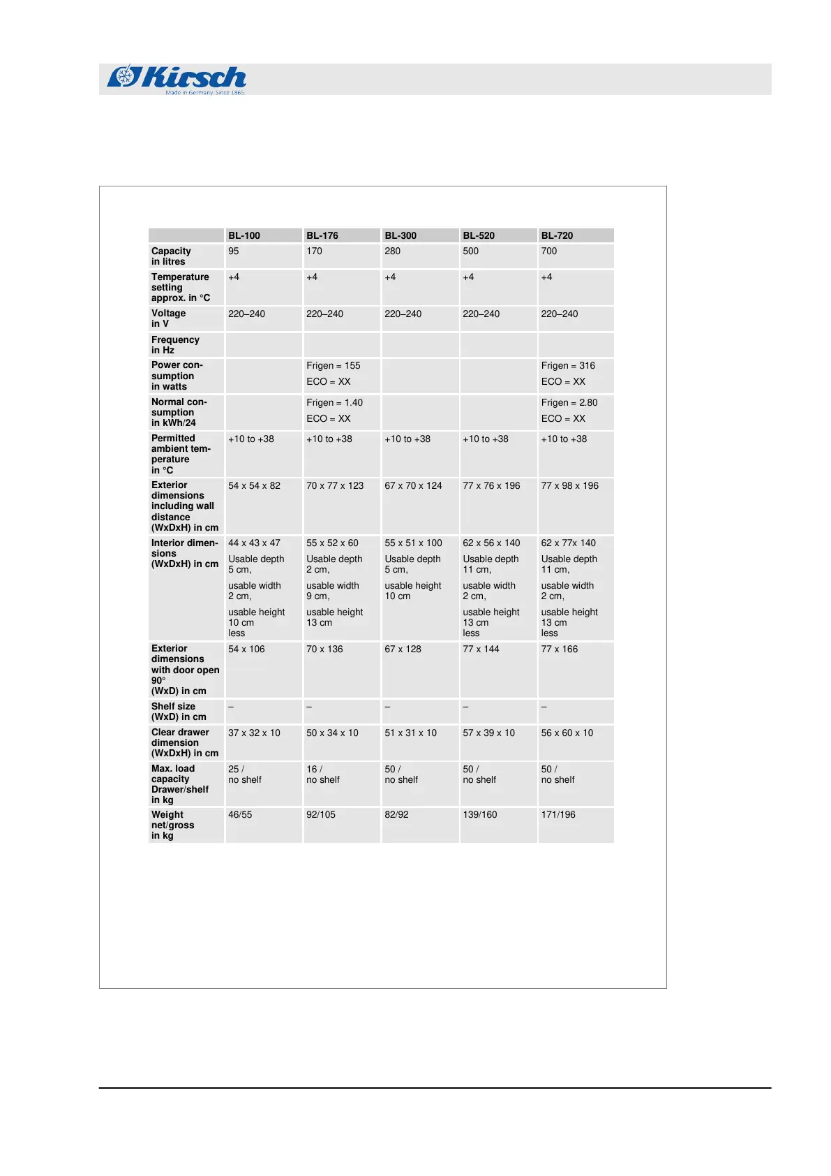 Kirsch BL Series - Technical Data