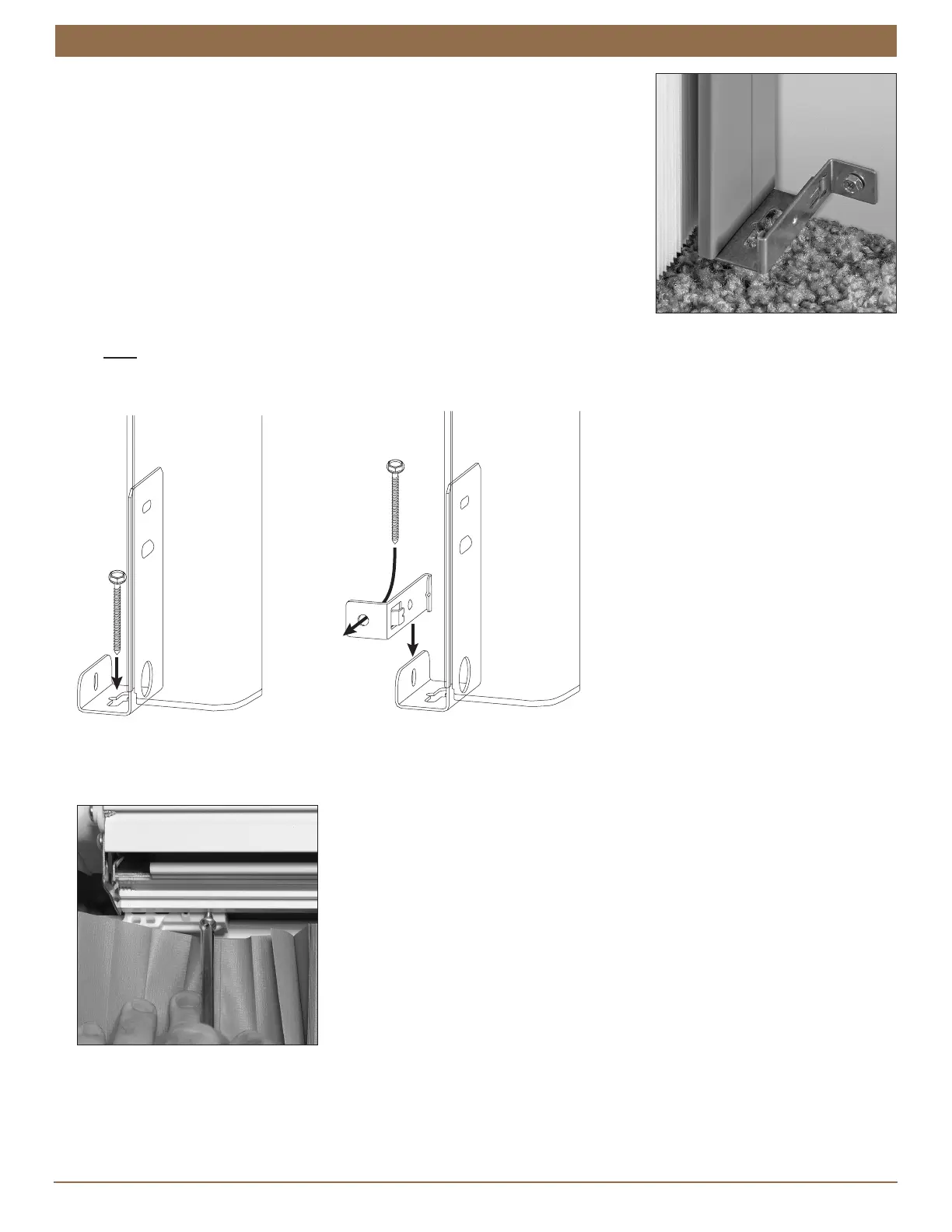 Floor or sill attachment: Attach the stationary rail bottom bracket using the