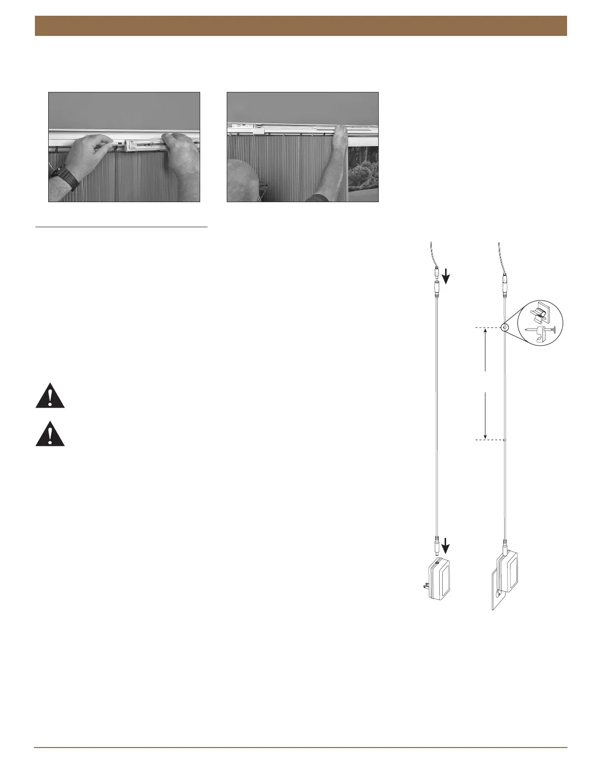 Route the extension cable over the top of the headrail and behind the stationary rail
