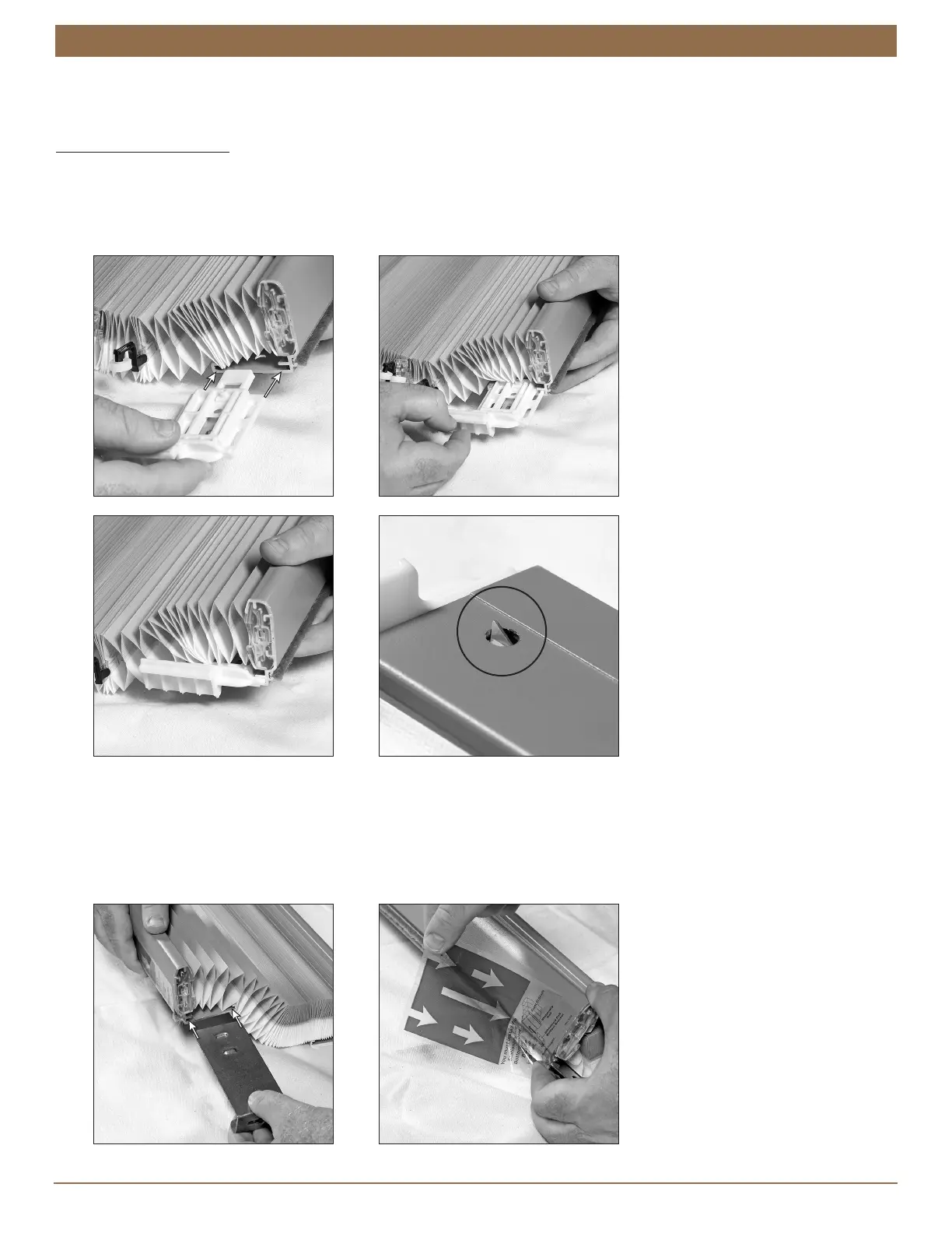 Insert the stationary rail bracket into the vertical rail on the side where the fabric stacks.