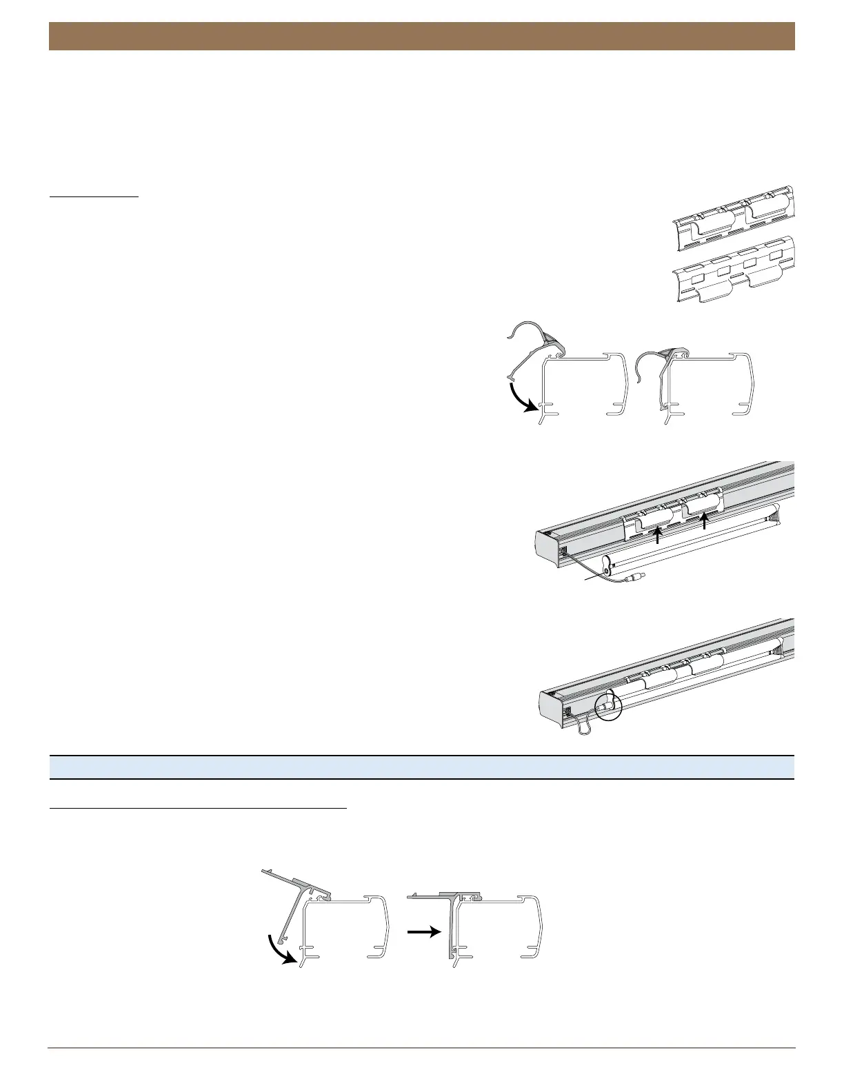 Hook the clip onto the back channel of the headrail.